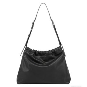 Cowhide lucky bag with niche design, pleated drawstring single shoulder crossbody women's bag